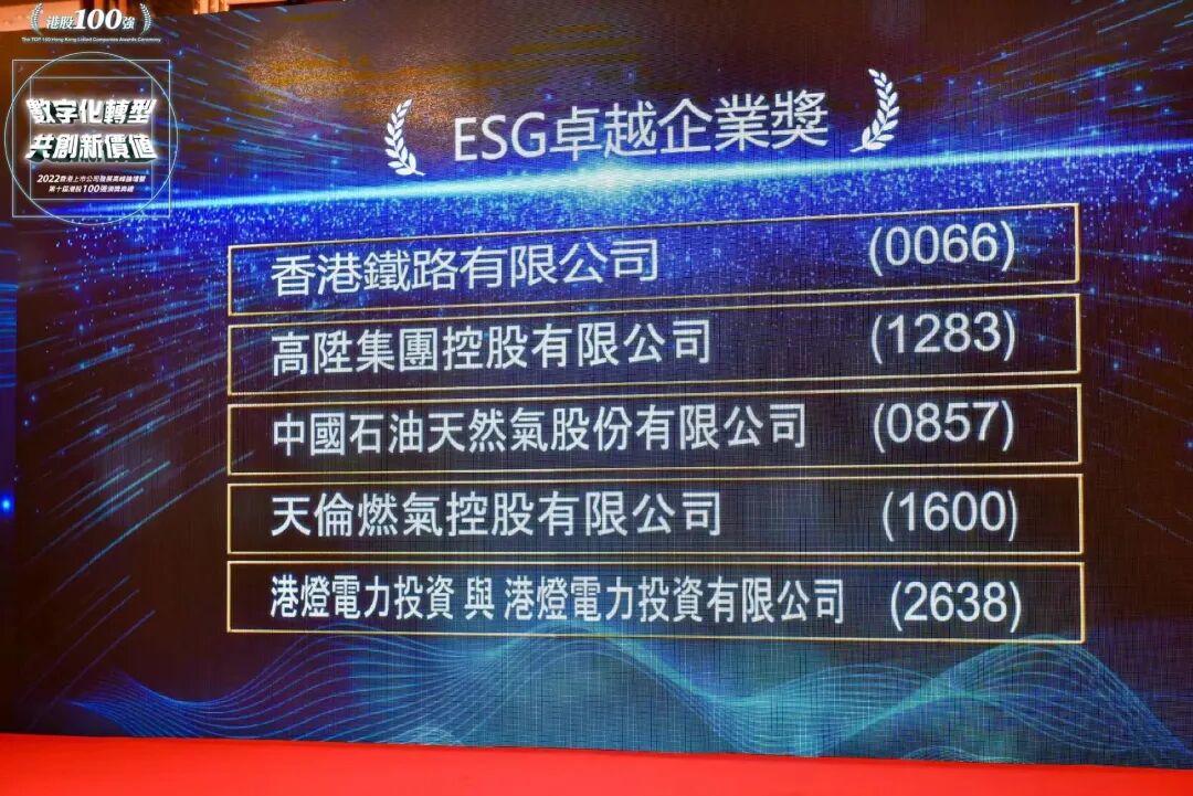 第十届港股100强「ESG卓越企业奖」