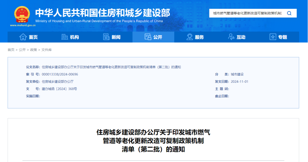 推进城市燃气管道等老化更新改造,天伦模式获住建部推广
